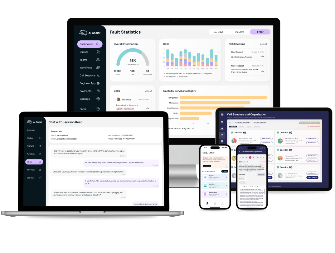 We deploy AI assistants across channels like web widgets, Slack, MS Teams, WhatsApp, and mobile apps, reusing logic across environments while tailoring UX per platform.