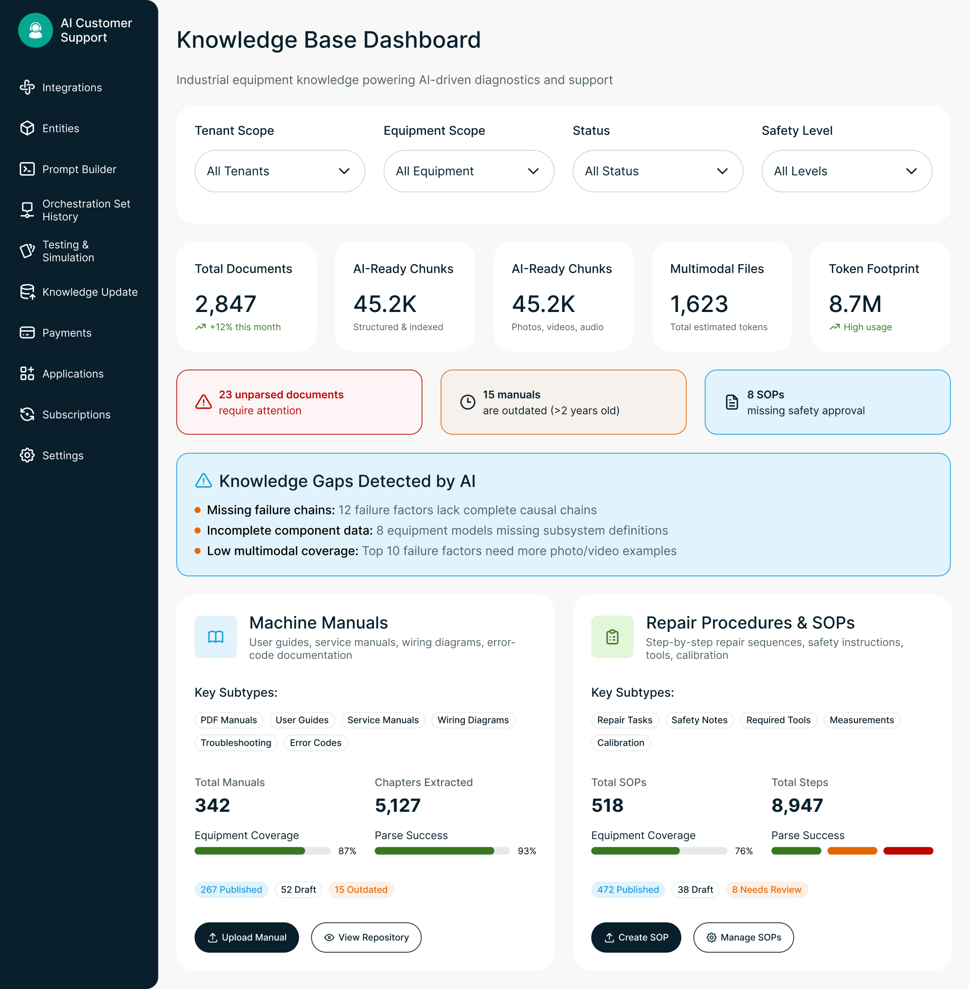Instant, secure, AI-driven technical support that reduces downtime, scales your service operations, and protects your proprietary knowledge base